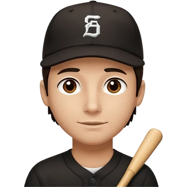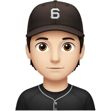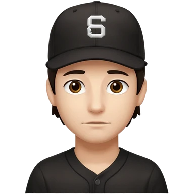 male, dark brown hair, dark brown eyes, fair skin, black baseball hat, no smile emoji