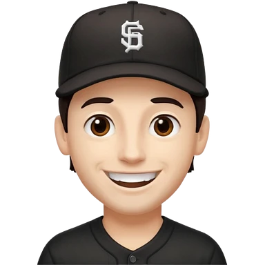 male, dark brown hair, dark brown eyes, fair skin, black baseball hat, no teeth emoji