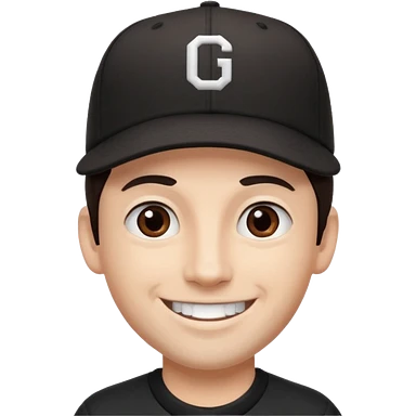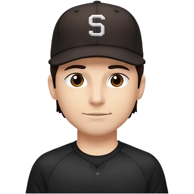 male, dark brown hair, dark brown eyes, fair skin, black baseball hat, dry fit tee emoji