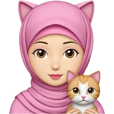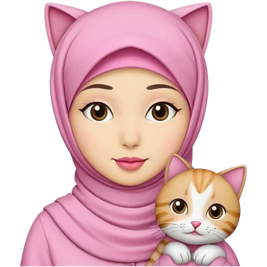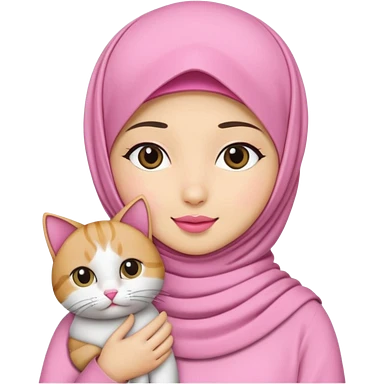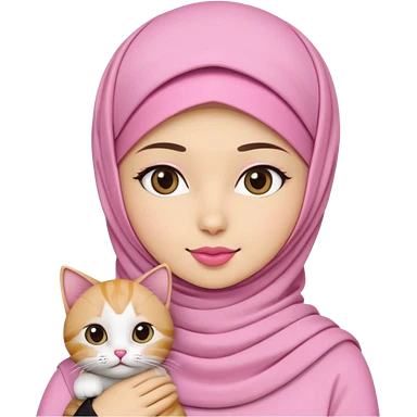 wanita hijab pink dengan 1 kucing emoji