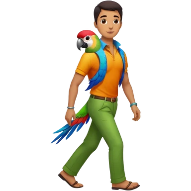 Walker + parrot on shoulder, Pet Walkers, Full body. emoji | AI Emoji Generator