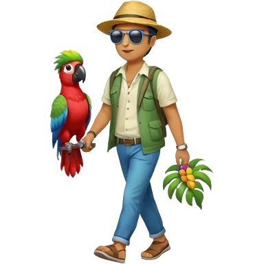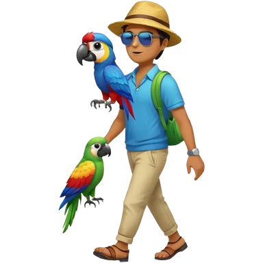 Walker + parrot on shoulder, Pet Walkers, Full body with walk pose emoji | AI Emoji Generator