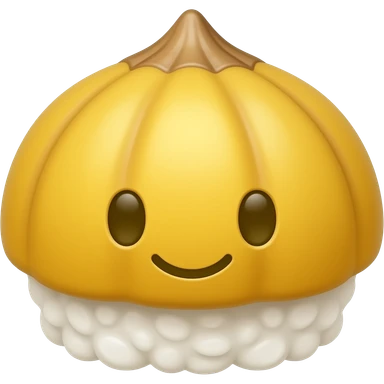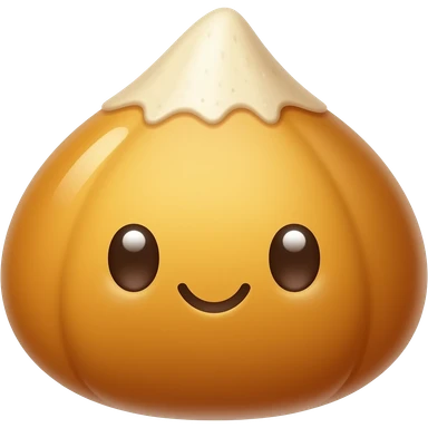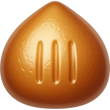 kawaii butter rice cake emoji, chestnut shape, three finger marks, glossy golden surface, simple icon style emoji