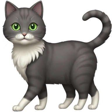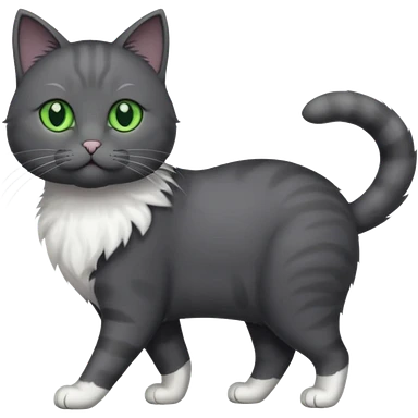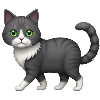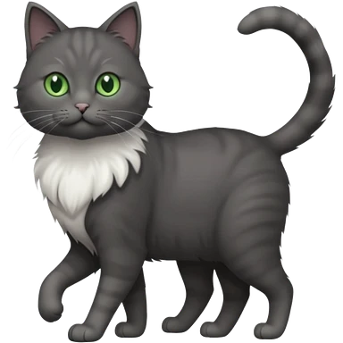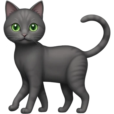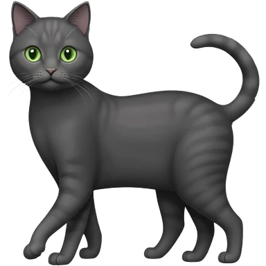full body gorgeous solid dark grey cat with green eyes, white paws and white whiskers walking emoji
