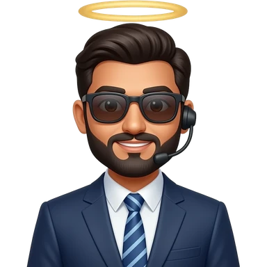 indian Tech support boss with goate beard with sunglass with halo emoji