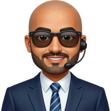 indian Tech support boss bald with goate beard with sunglass with halo emoji