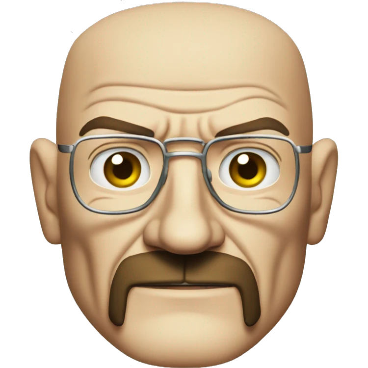 Walter White from Breaking Bad, bald, wearing glasses and beard, serious expression emoji
