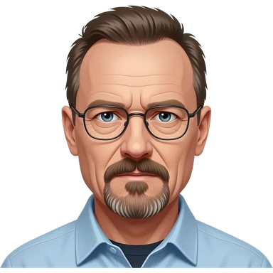 Walter White from Breaking Bad, bald, wearing glasses and beard, serious expression emoji