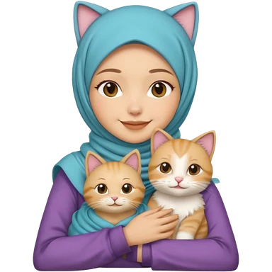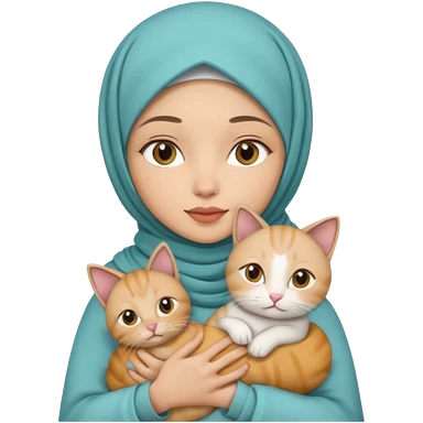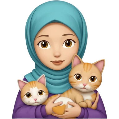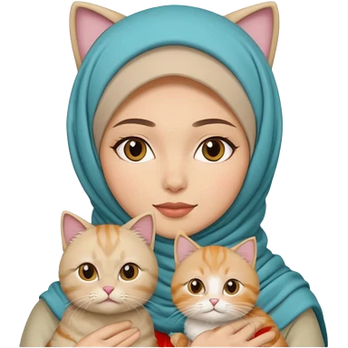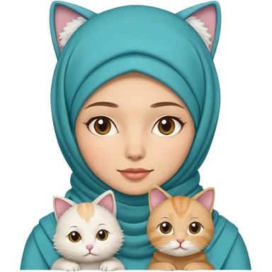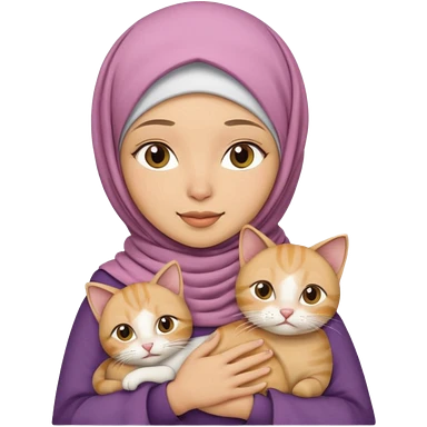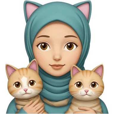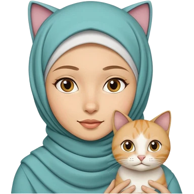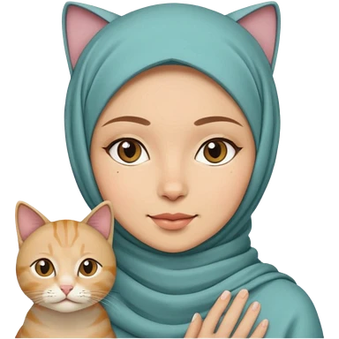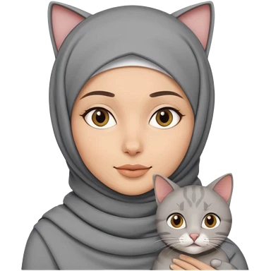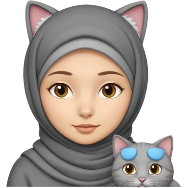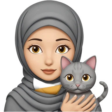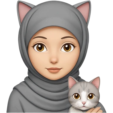wanita berhijab warna abu abu dengan 1 kucing emoji
