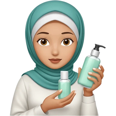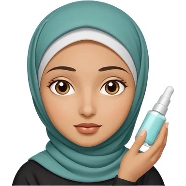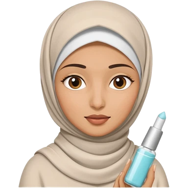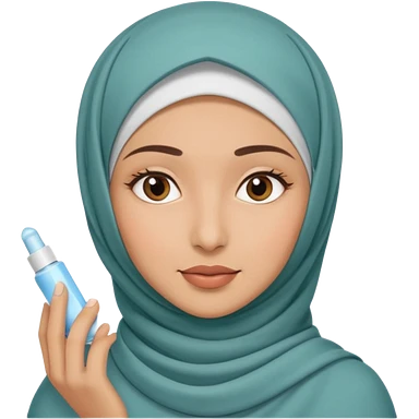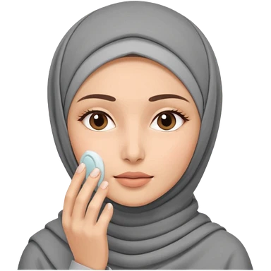 wanita berhijab abu-abu lagi skincare di muka emoji