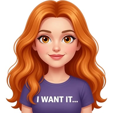 sexy girl with overlong ginger hair and ginger eyes a top with I WANT IT... written on it emoji