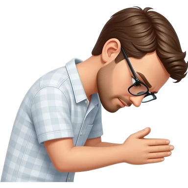 I want to make an emoji like this, give me an order and has a bowed head and one hand behind and one in front. emoji