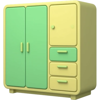 green and yellow a modern cute wardrobe with soft pastel tones, minimal design, aesthetic bedroom furniture, 3D render inspired by Barbie colour palette emoji