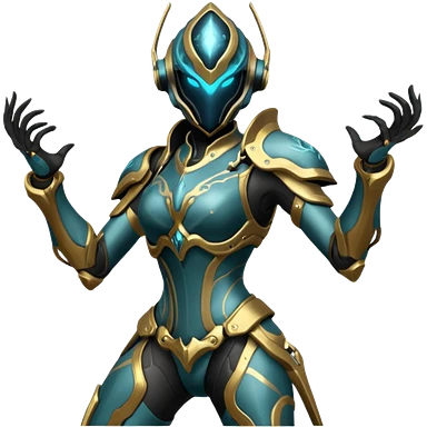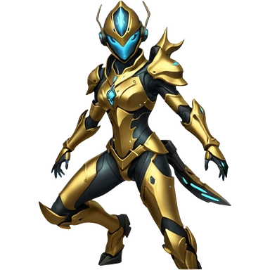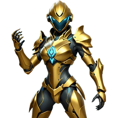 Warframe-inspired wolf Warframe with sleek biomechanical armor, a snarling wolf-like helmet, glowing eyes, and clawed gauntlets. Dark metallic colors with glowing energy lines, blending feral agility and deadly stealth. emoji