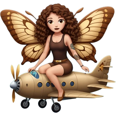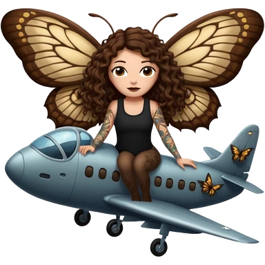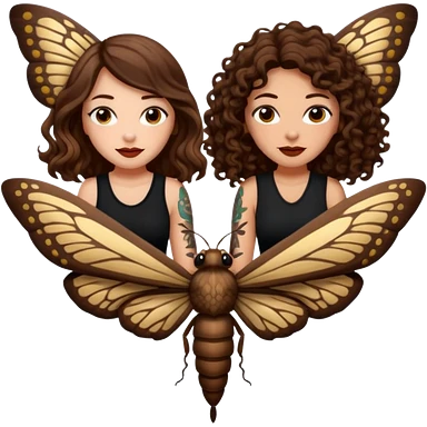 giant moth ride — long wavy brown hair tattooed woman and short tight curly brown hair woman — night flight emoji