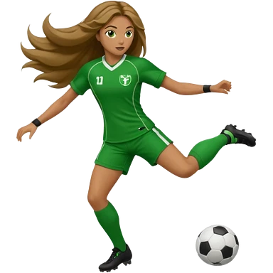 Long Haired Football Players, Female player, green cloth, full body kick ball emoji