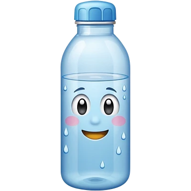 water bottle object icon, transparent bottle with water inside, glossy plastic, 3D cartoon, soft shadow, mobile game icon style, centered, clean background, no text, no watermark emoji