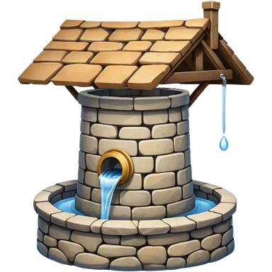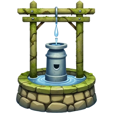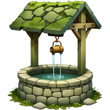 Create a clean emoji-style icon showing a small child falling into a round stone water well. The well must be clearly recognizable: circular stone rim, dark opening. Show the child mid-air, tilted downward above the well with simple motion lines. emoji
