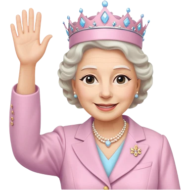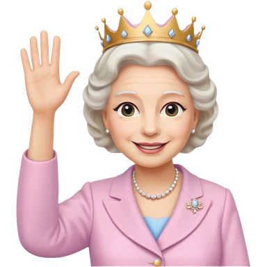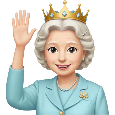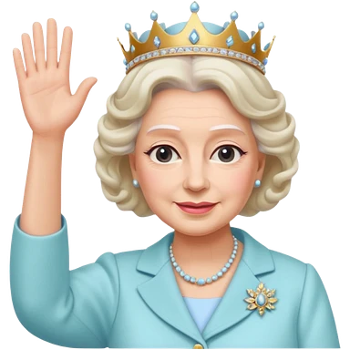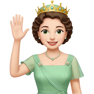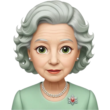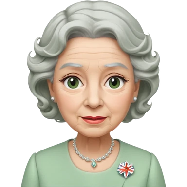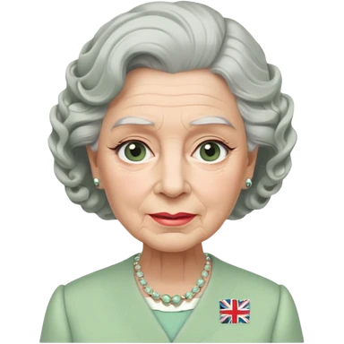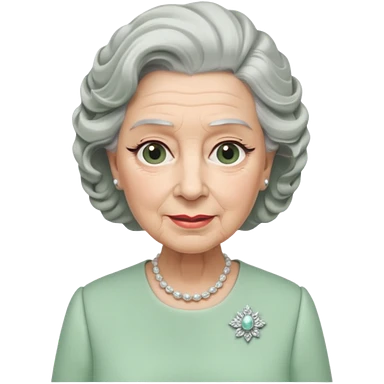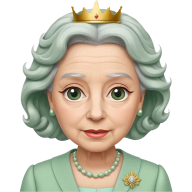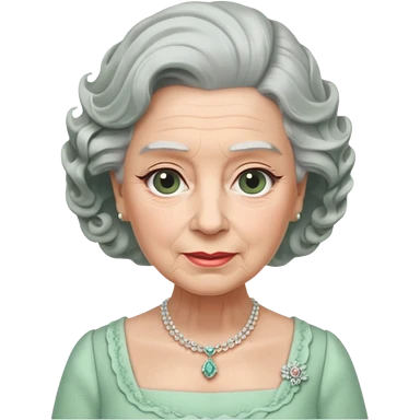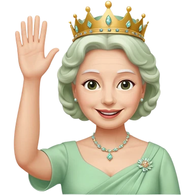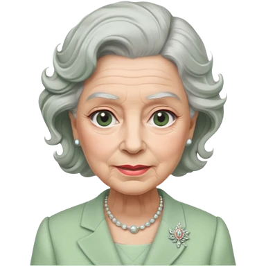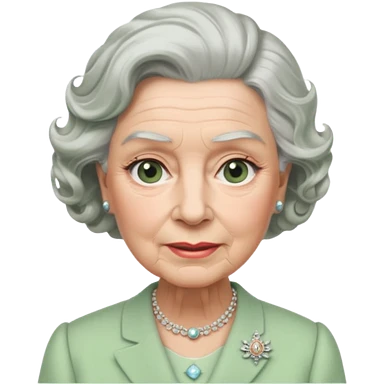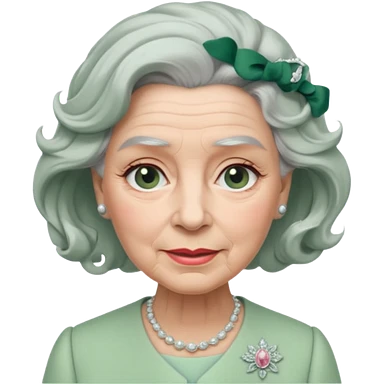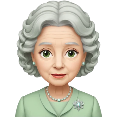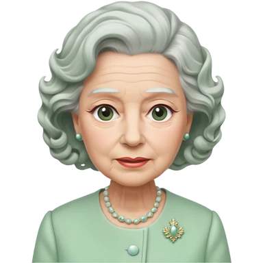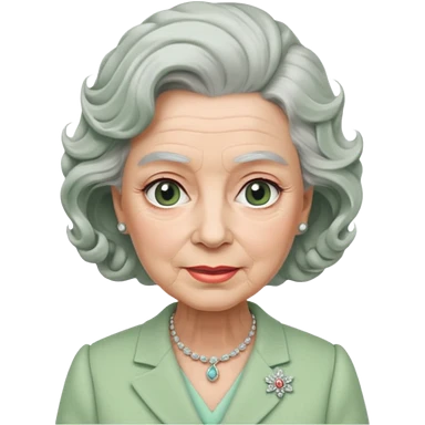 Queen Elizabeth with grey hair and waves in pastel green clothes emoji