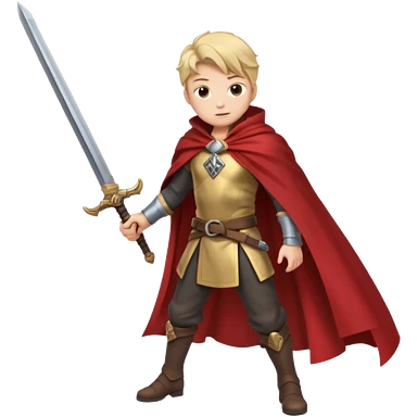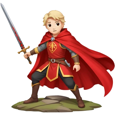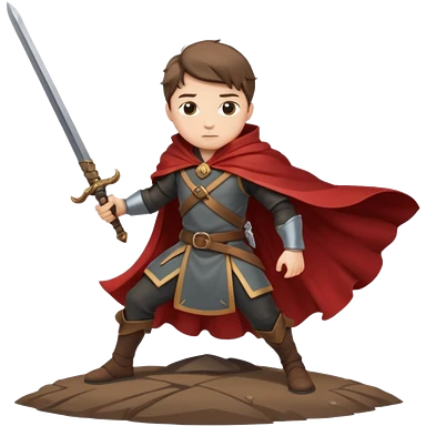 Character leaning on a sword stuck in the ground, wind whipping cape emoji