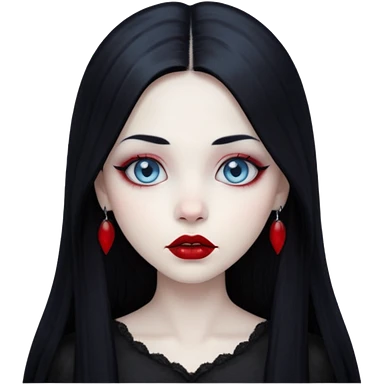 Gothic girl, pale ghost skin, light blue eyes, red round lips and long straight black hair. emoji