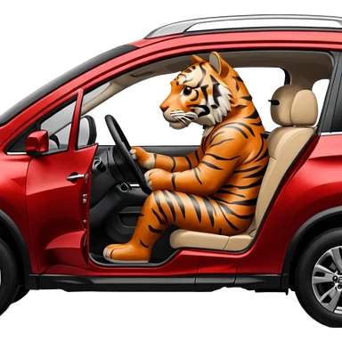 Side view of Tiger driving inside a RED NISSAN ROGUE SUV emoji