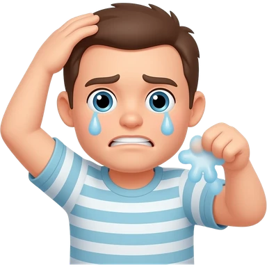 a guy with a laptop is working and sweating from difficult work. comic style. emoji