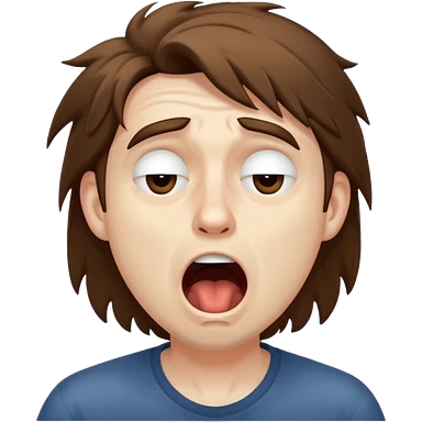 Weak man with disheveled hair, large dark circles under his eyes, and yawning emoji