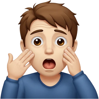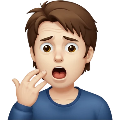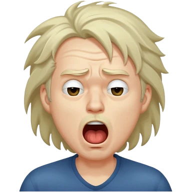 Weak man with disheveled hair, large dark circles under his eyes, and yawning emoji