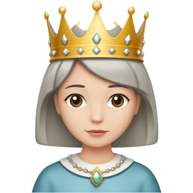 Wearing a crown. Bob haircut with salt pepper hair emoji