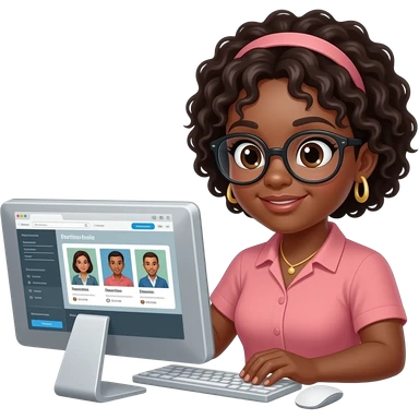 African american teacher looking at digital portfolio site on her computer emoji