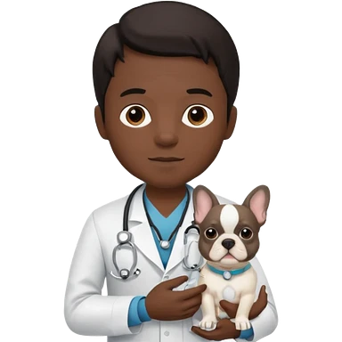 médico negro con bulldog francés blanco emoji