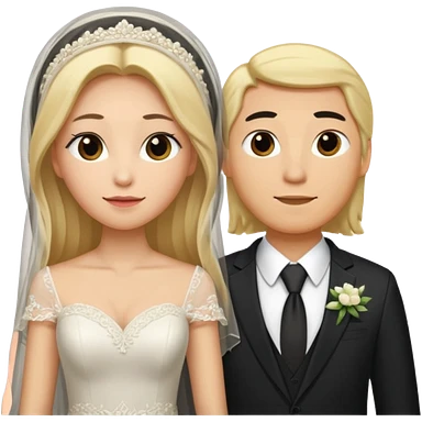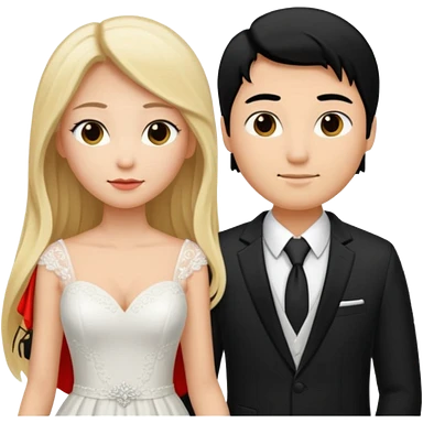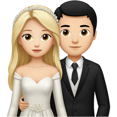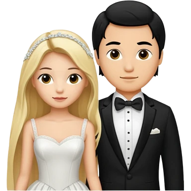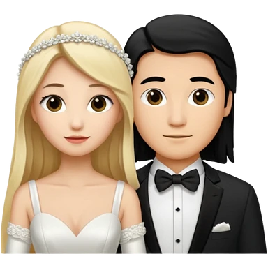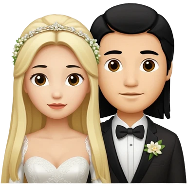 Wedding couple blonde bride long hair and black hair Chinese groom emoji