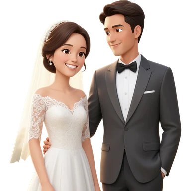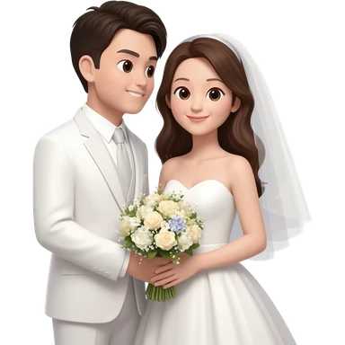 Brown eyes tan skin Asian man with brown eye black hair light fair skin woman in love in wedding emoji