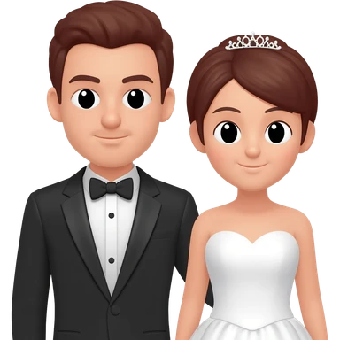 wedding couple, woman has long straight brown hair and blue eyes, man has short light brown curly hair and facial hair with blue eyes emoji