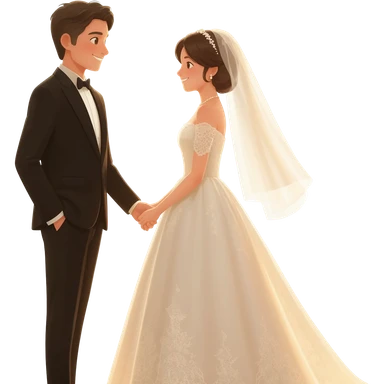 Brown eyes tan Asian man with brown eye black hair light fair skin woman in love in wedding emoji