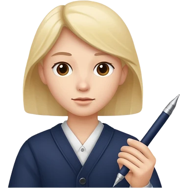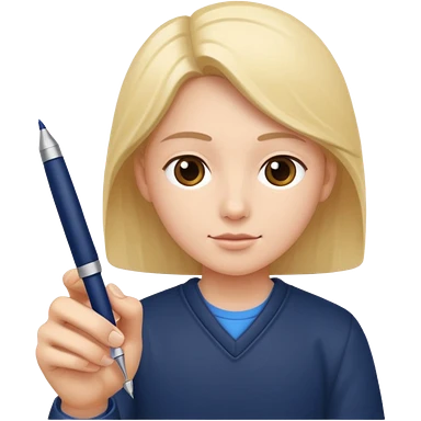 یه پسر با موهای بلند و فرفری با لباس ابی موهاش رو دُم اسبی بسته باشه emoji