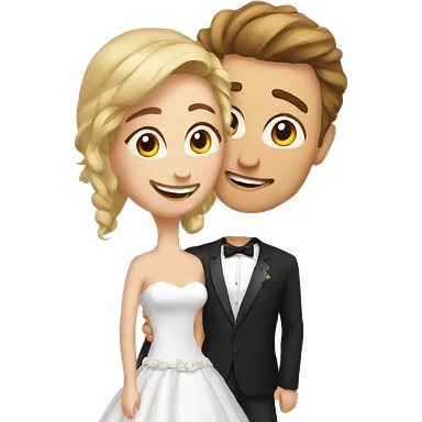Newly weds, groom wearing brown suit and bride white dress emoji