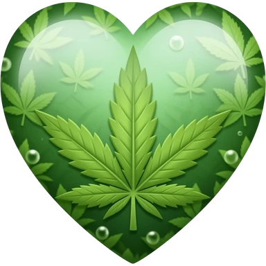 weed leaf with a cute face holding a big huge heart that he can barely carry emoji