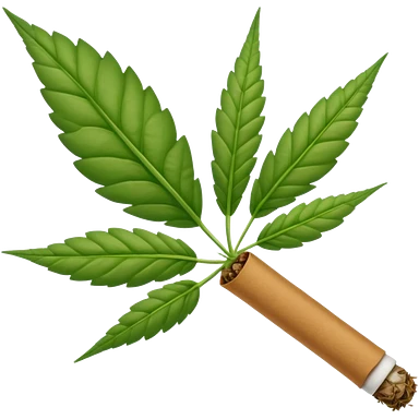 classic yellow emoji face, relaxed expression, eyes with visible red veins (not fully red), holding a clearly rolled weed joint emoji