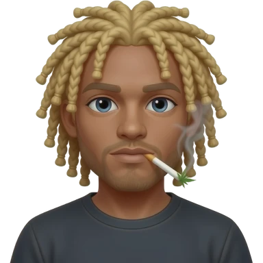 A purple weed smoking emoji with purple dreads, red eyes, hands full of rings, and wearing airforce1 shoes emoji