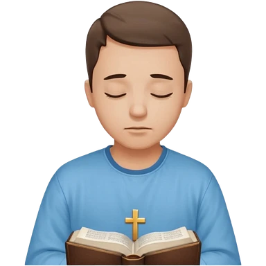 Guy who reads Bible with cross on it and with his eyes closed in prayer and without anything in the background emoji