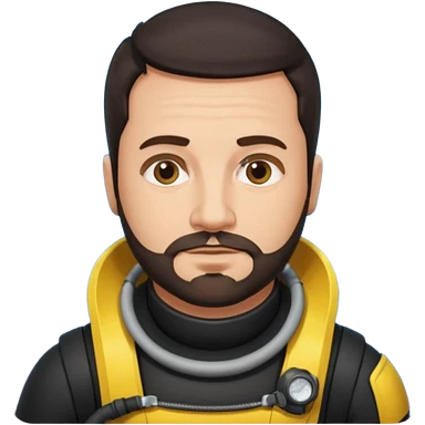 Man 38 dark hair, short beard, mideteranean, slightly overweight, scuba diving. Portrait emoji