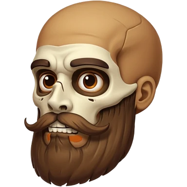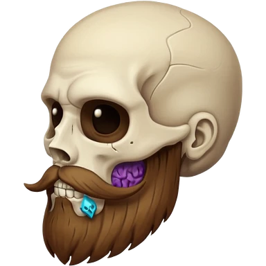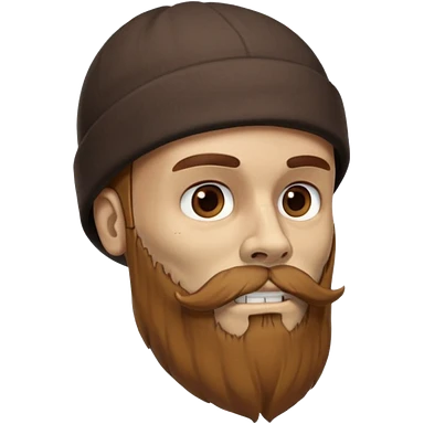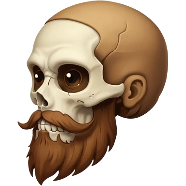 detailed human skull with Brown mustache and full beard side view wearing beanie emoji