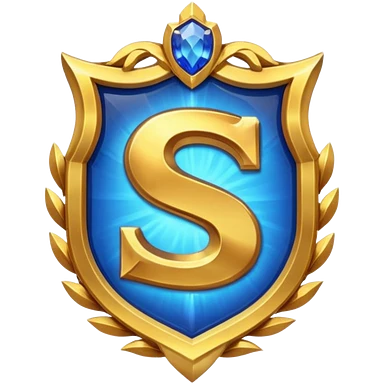 Create a custom emoji badge featuring a stylized, glossy letter “S”. Style it after the Challenger rank from League of Legends. Use gold & sapphire blue colors, radiant glow effects, and a majestic, high-prestige frame. emoji