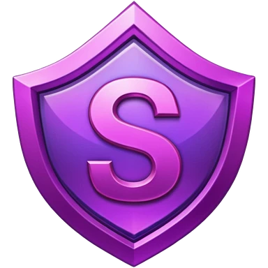Create a custom emoji badge featuring a stylized, glossy letter “S”. Design it in the Master rank style from League of Legends. Use purple-magenta metallics, sharp edges, and a powerful elite aura. emoji