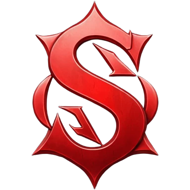 Create a custom emoji badge featuring a stylized, glossy letter “S”. Theme it in the Grandmaster rank style from League of Legends. Use intense red accents, dark metals, and strong contrast for a dramatic elite look. emoji