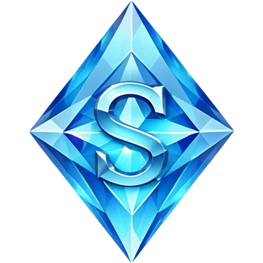 Create a custom emoji badge featuring a stylized, glossy letter “S”. Style it after the Diamond rank from League of Legends. Use crystalline blue tones, sharp reflections, faceted textures, and a high-end glowing frame. emoji