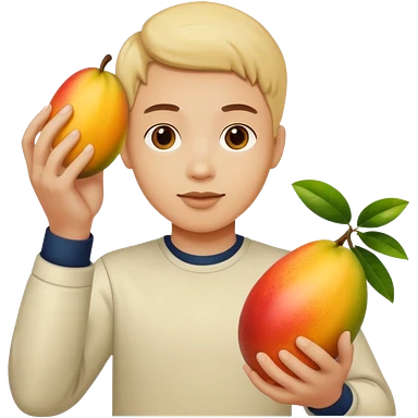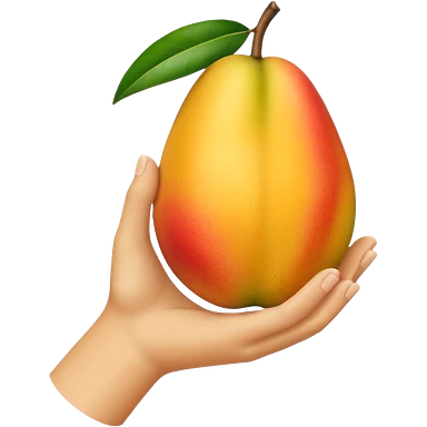 mango in white hand, android emoji style, 🥭✊🏻 emoji