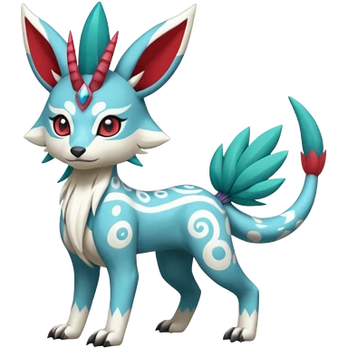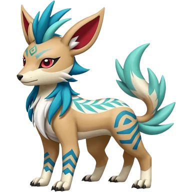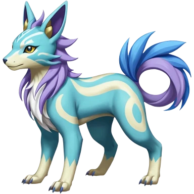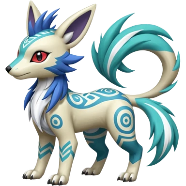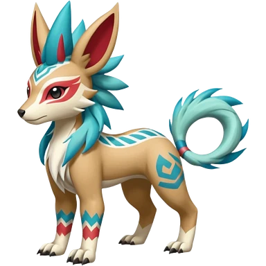 Tropical Tiny Marked Patterned Tribal WereGarurumon-Suicune-Linoone-Meloetta-Renamon-fusion-hybrid-creature (full body) emoji